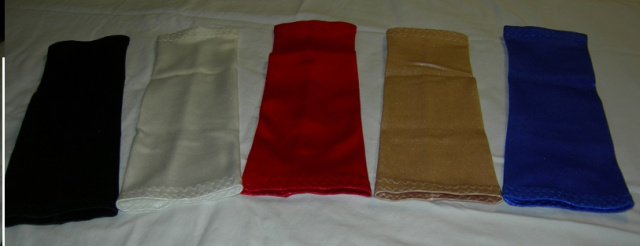 Made out of lycra. They cushion your legs and help to prevent and protect your legs from chaffing. They extend from your ankle to just below your knee. you can order larger Leggings by contacting us. Colors are: black, red, blue, purple, yellow, green, white, pink.